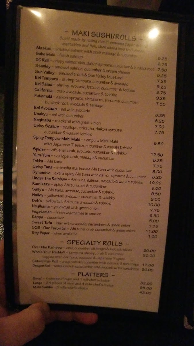 Tuna, crab, jalapeño, jicama (when available) or cucumber, avocado and fresh lime inside, cilantro and sesame seeds outside.